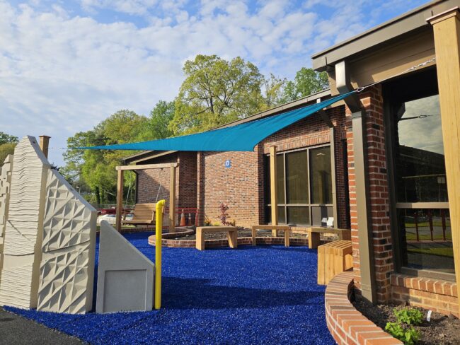 The outdoor learning center is organized to support both active play and quieter moments of reflection and exploration. Every element was intentionally considered to create an environment that feels engaging, approachable, and empowering for students.