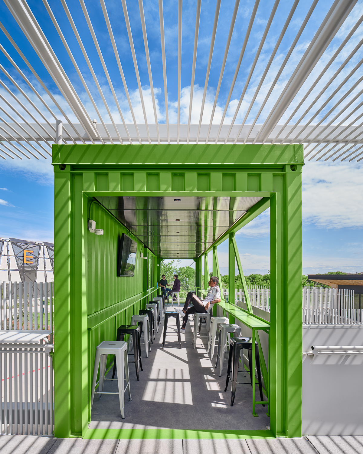 The Pitch acts a bridge, connecting a business park to Austin FC’s new training campus through a series of connected experiences that represent Authentic Austin. The space serves as an active promenade, day and night, that combines retail, food, and work space along an undulating pathway through the natural landscape.