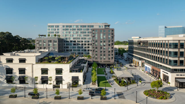 Completed in 2024, Highland North Hills is a 12-story residential tower located in Raleigh’s North Hills Innovation District. It’s a project that blends urban energy with moments of calm, and the landscape architecture plays a central role in that balance.
