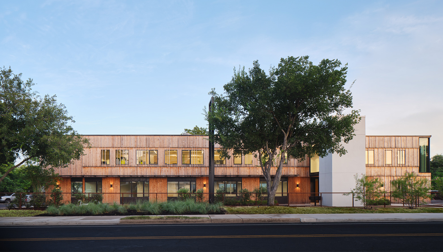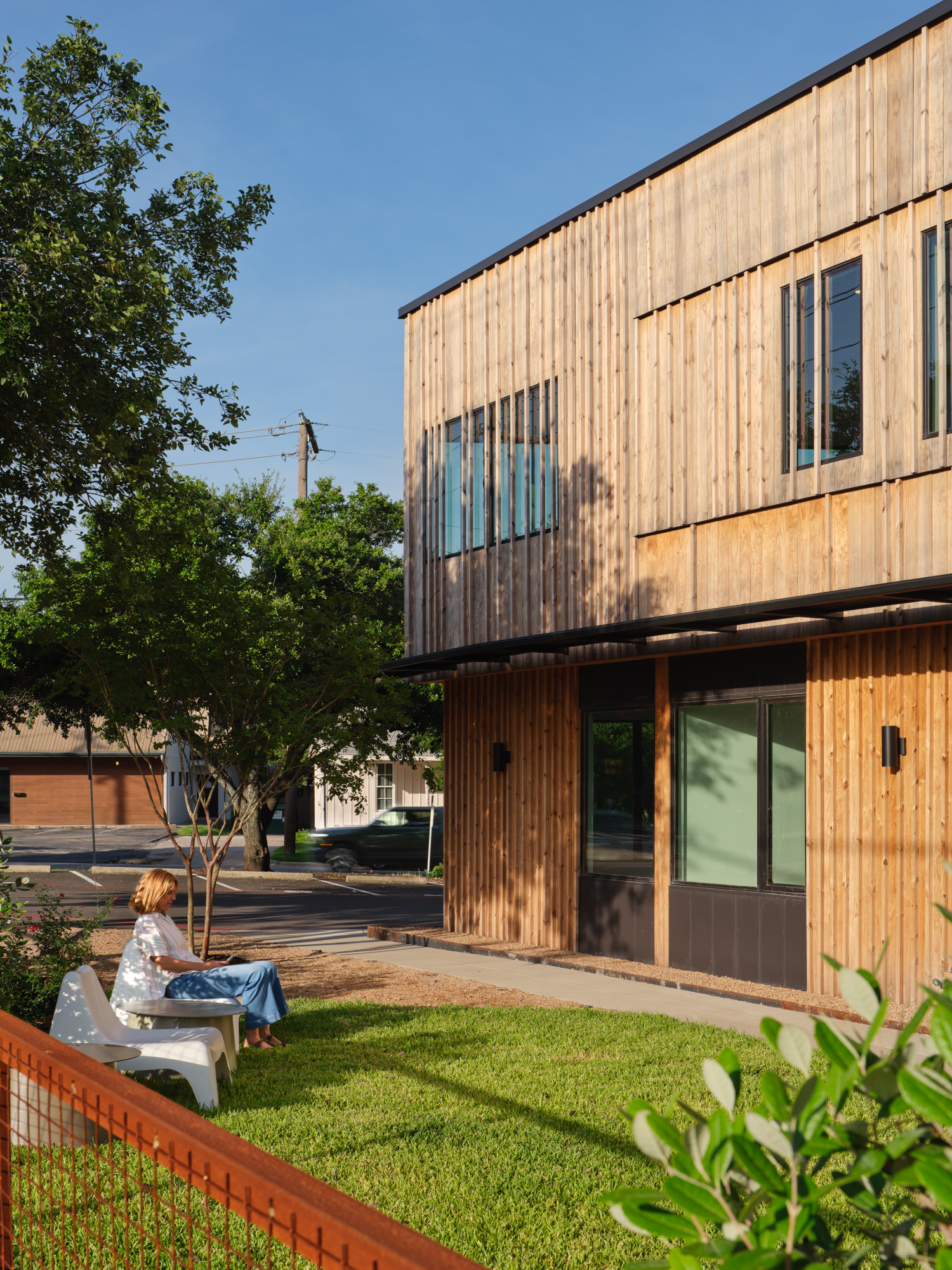 The existing front parking area at 4000 Medical Parkway was replaced with a green buffer, creating a welcoming “front yard” between the street and the building. This innovative design decision prioritizes wellness and sets a precedent for greenscapes in urban areas.
