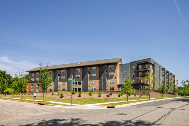 A partnership between DHIC, Kintura, and the Presbytery of New Hope, the 156-unit community provides housing for adults aged 55+ earning at or below 60% of the Area Median Income (AMI). Supported by funding from the City of Raleigh, Milner Commons responds to the growing need for affordable housing for the city’s aging population.
